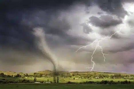 A supercell thunderstorm is a persistent, violently rotating column called a mesocyclone. The leading edge of the thunderstorm will show up as a menacing shelf cloud with flashes of lightning. In some instances, this can spawn funnel clouds, the precursor to a tornado. The straight winds that spawn from the supercell can cause serious damage to homes and power lines. They are most frequently seen in the Great Plains states, such as Kansas, Nebraska, and South Dakota.