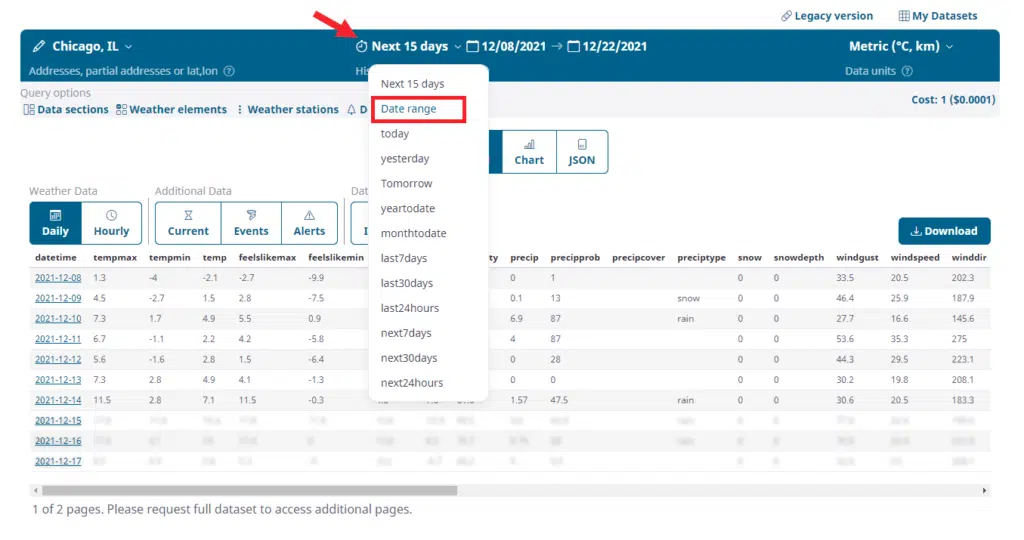 Once on the main Query Builder page, you can build the query you want to get data for. We will choose data for all of 2021. To do this, we choose the ‘Date range’ option in the top section of the header.