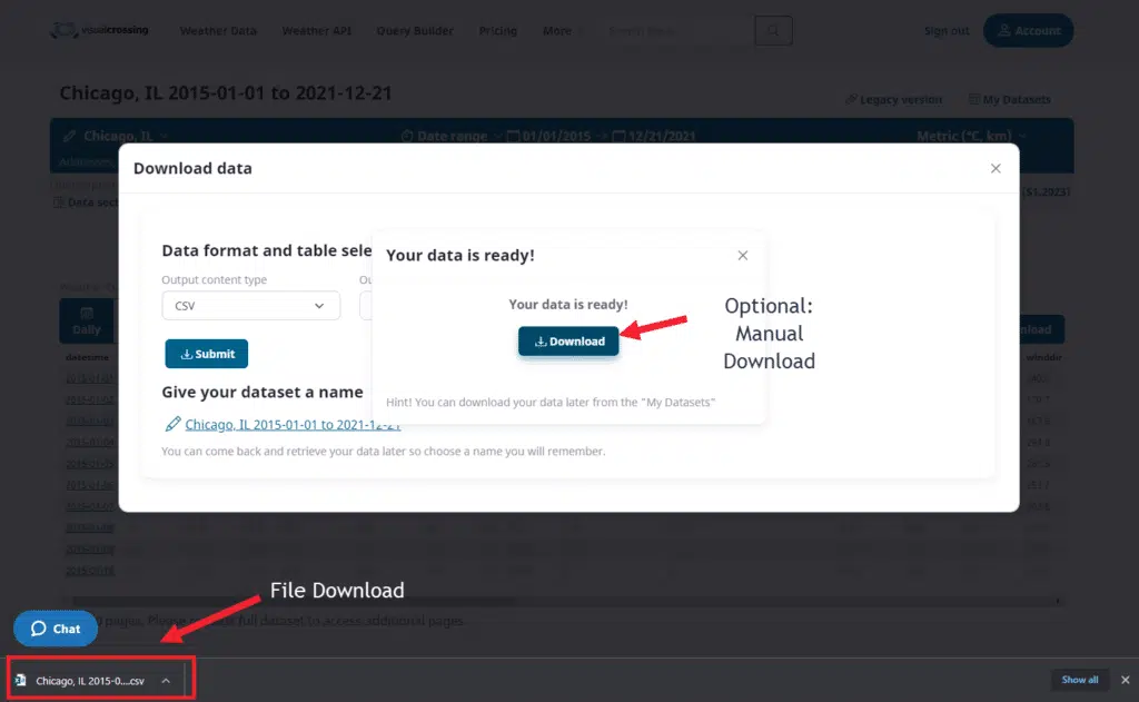 If you don’t already have a Visual Crossing Weather account, you can create one for free. Simply following our article that details the sign up steps. Once you are logged in, go to our web-based Query Builder where you can easily build your weather data query.