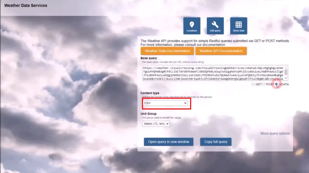 To automatically generate a query string for your locations click the ‘Query API’ button