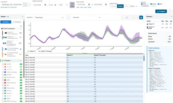 Our data is sourced from verified government entities like NOAA, German DWD, UK Met Office, and private networks. This ensures the highest possible precision for each location. With continuously updated, high-resolution models, Visual Crossing provides the confidence to make informed decisions no matter where your operations are located.