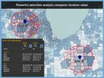 Select, analyze, aggregate and compare areas of your geographic data with polygon, distance radius, and line buffer tools.