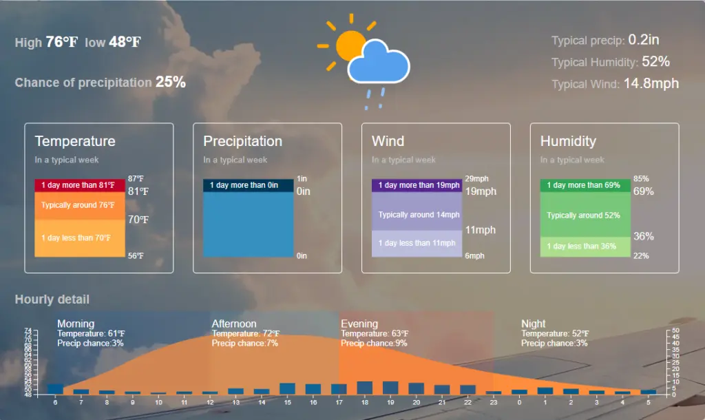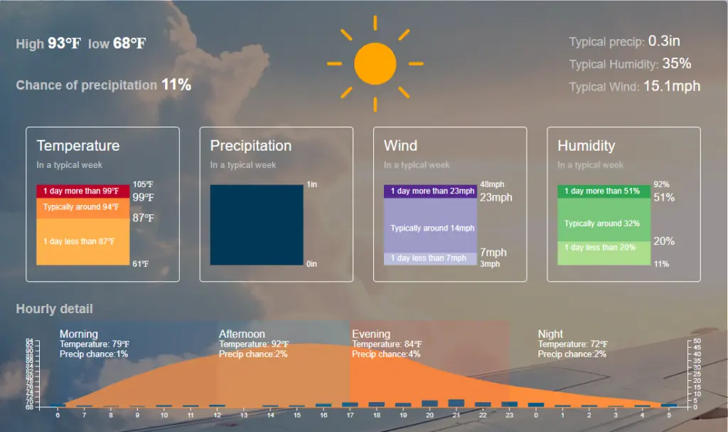 We can use historical weather data to help identify the kind of weather we’re likely to experience on our trip have so we can be prepared from clothing to deciding whether to bring our tents or rely on the RV. These historical weather trends are freely available on the Visual Crossing Average Weather Dashboard.