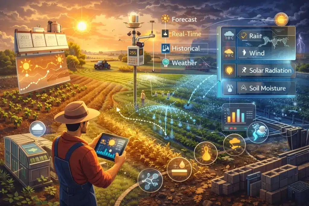 Choose an API like Visual Crossing, which integrates all of these datasets into a clean, standardized format. The API allows easy integration into most management software and dashboards while supporting automation, such as feed systems and irrigation.