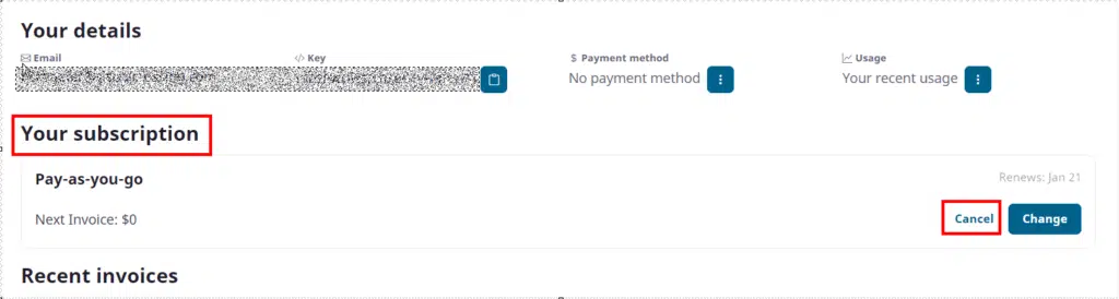 5. In the ‘Your Subscription’ section, click the Cancel button.