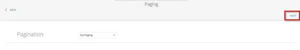 - Leave the paginantion setting at ‘No Paging’ and click Next