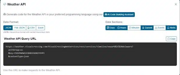 - Build the Query: Use the Query Builder to select your location(s) and the type of data (e.g., “15-day forecast” or “History”).