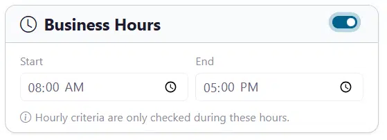 - Hourly criteria are only evaluated during this window.