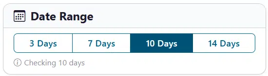 The Date Range card lets you choose how many days ahead to analyze: