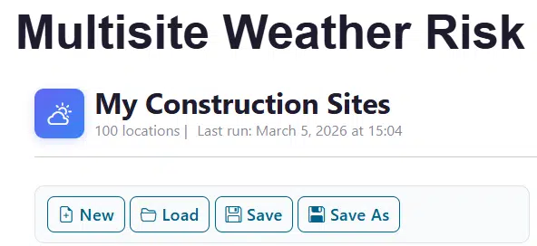 When you first open the Multi-Site Weather Risk Monitor you’ll see a welcome tutorial that walks through the three-step workflow: