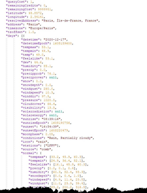 That is the 15-day weather forecast for Paris in JSON format. Your browser may not format it as nicely nicely, but if you paste it into a smart editor such the excellent Notepad++, you can see the data easily.