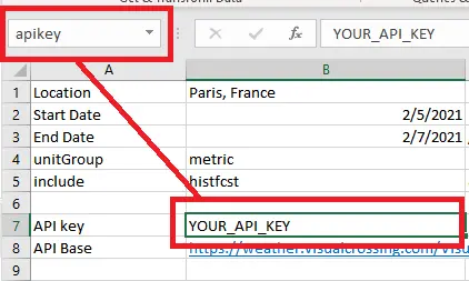 ApiQuery="https://weather.visualcrossing.com/VisualCrossingWebServices/rest/services/timeline/" & location & "/2021-2-1/2021-2-17?unitGroup=us&key=YOUR_API_KEY",