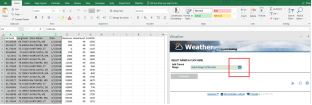 Once you have selected those columns, press the Select Range button in the Weather tab.