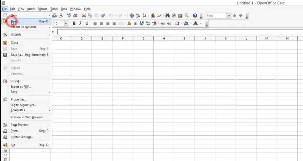 Step 8 – Run your OpenOffice Calc Application and open the file