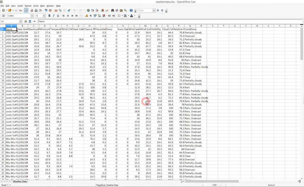 You can now use the full OpenOffice functionality for viewing, visualizing and manipulating the weather data.