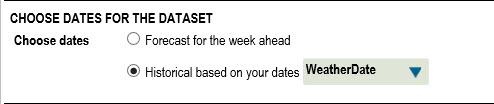My dates are at the day level and they are found in the ‘WeatherDate’ column, so I will assign that column as my date and choose the Historical weather option because my dates are in the past.