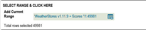 We need to give the Weather add-in a range of data that includes Locations in the form of Lat/Longs or addresses as well as dates for matching historical data. At this point we can click on the corner to select the entire worksheet, a set of columns or a specific range of values. I have almost 50,000 dates to match and I will select the entire range.