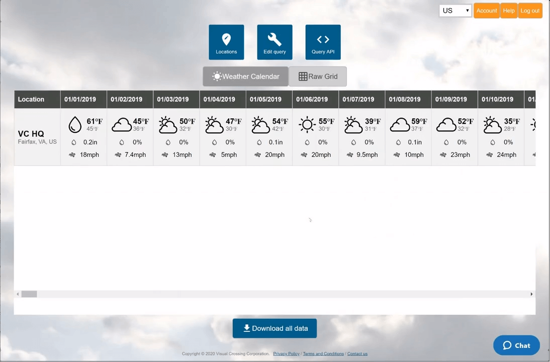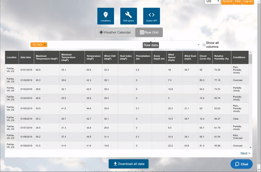 In this article, I’m going to show you how to easily load historical weather data into your R analysis. We’ll walk through the process step-by-step showing you how to construct the query in Visual Crossing Weather and then use the query URL to import the weather history results using R Studio.