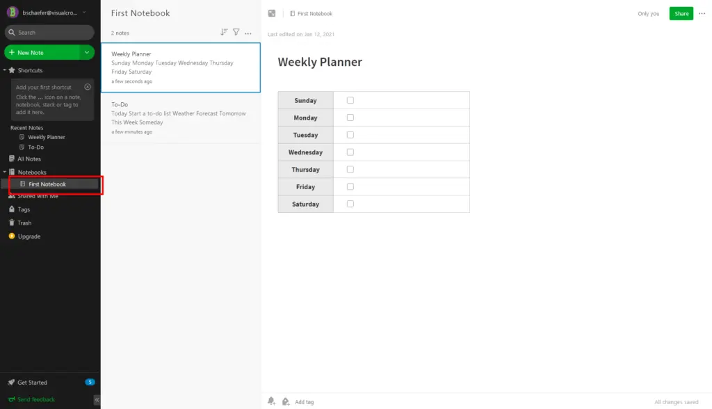 Step 2 – Log in to evernote on your preferred medium and open your notebook