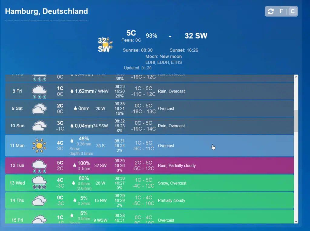 Once the site updated copy the parametrized URL. For example for Hamburg, Germany and metric values: https://www.visualcrossing.com/weather-forecast/hamburg/metric