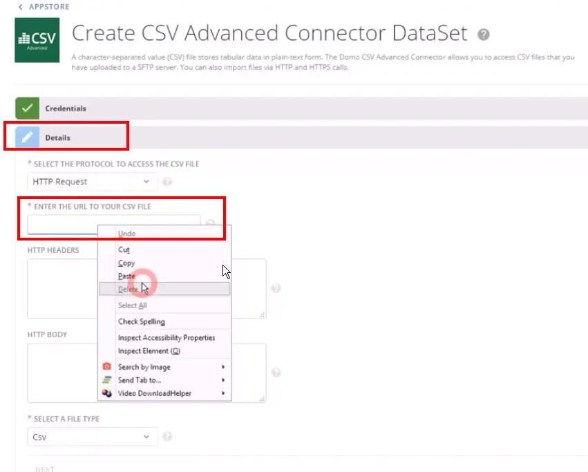 Step 4 – Log into DOMO Business Cloud and define the data source