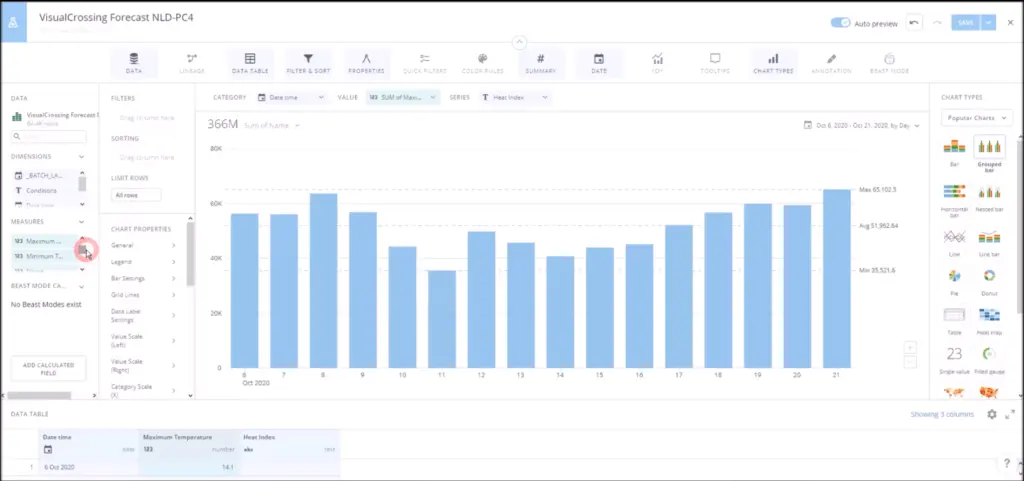 Now you can utilize the full visualization power of the DOMO Business Cloud on your weather data set.