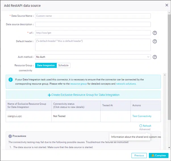 Before setting up the synchronization the Rest API must be added as a ” RestAPI data source “