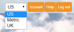 To change the units for the weather data in the Weather Data Services page, click on the unit selector in the top right of the page: