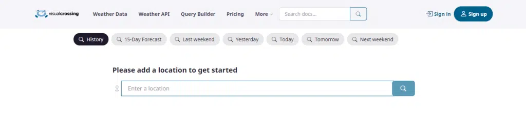 - Visit https://www.visualcrossing.com/weather-history