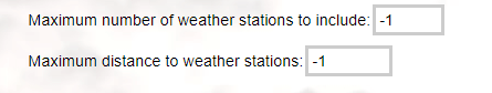 This behavior can be modified by the user by modifying the maximum number of weather stations to be considered and the maximum distance to search for weather stations.