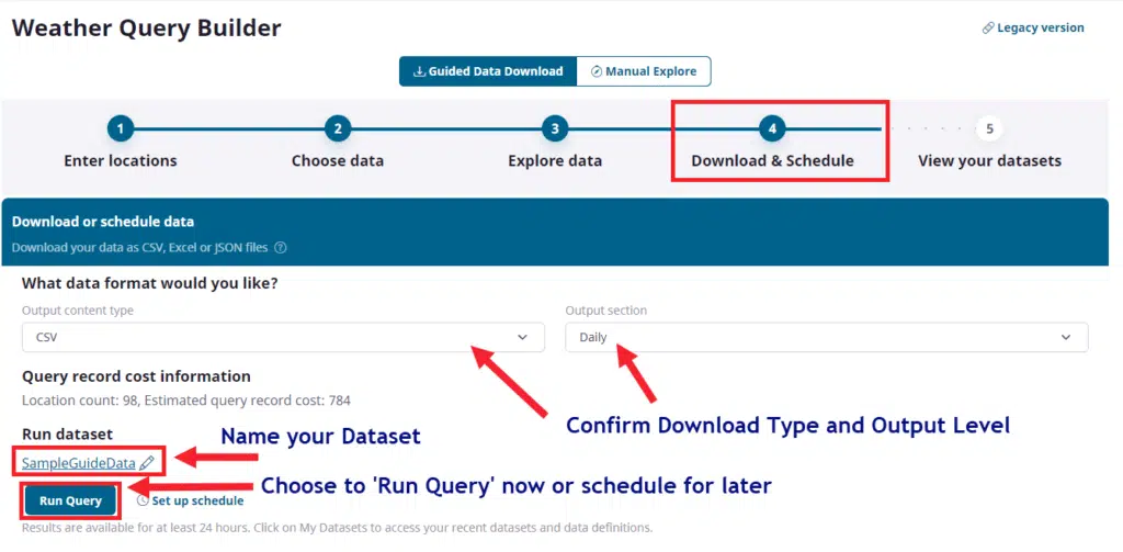 Tutorial: How to Build a Weather Dataset for Download, Bulk Import or Scheduling