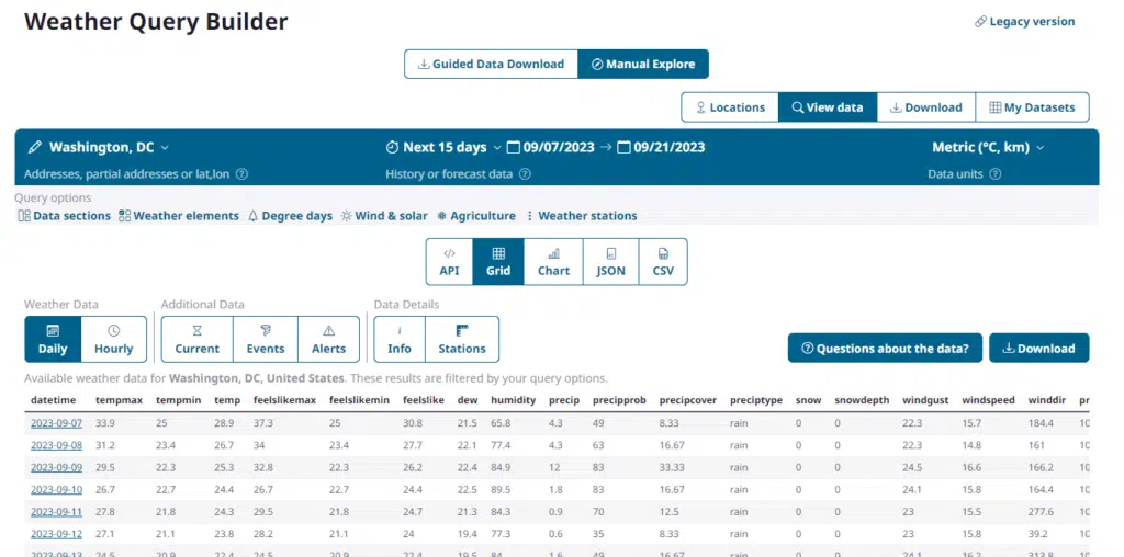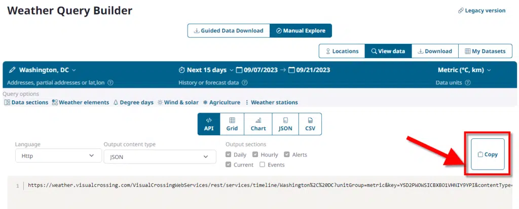 https://weather.visualcrossing.com/VisualCrossingWebServices/rest/services/timeline/Washington%2C%20DC?unitGroup=metric&key=MyKe&contentType=json