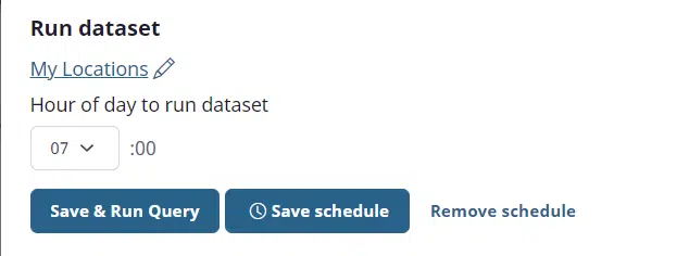 If you already have a weather query saved, you can load it from the My Datasets link in the upper right corner of the Weather Query Builder. Simply click on the saved query that you wish to schedule, and it will be loaded into the explorer view.