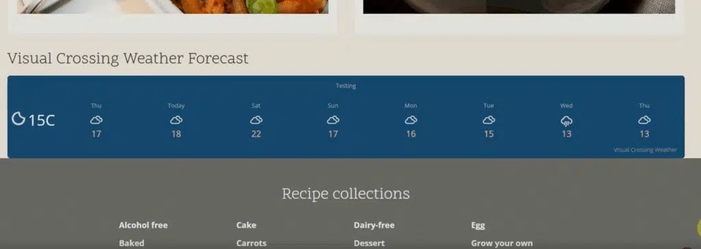 The free Visual Crossing Weather WordPress plugin enables you to display weather forecasts using a simple shortcode. You can insert this shortcode anywhere in your WordPress post or page to display a dynamic weather forecast.